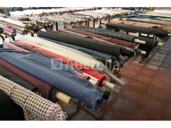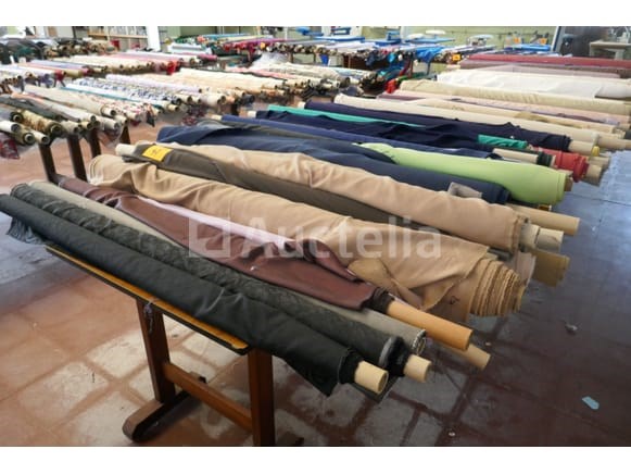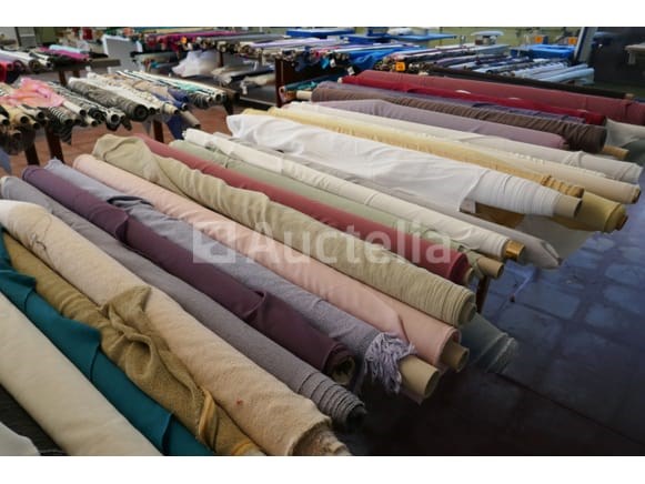 Partij diverse rollen met kleurijke stoffen voor kledij ( zie foto's voor aantal ) *liggende op tafels