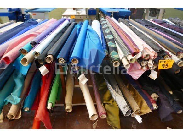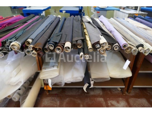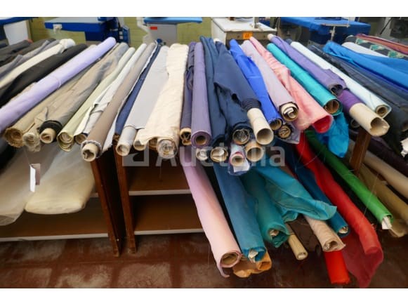 Partij diverse rollen met kleurijke stoffen voor kledij ( zie foto's voor aantal ) *liggende op tafels