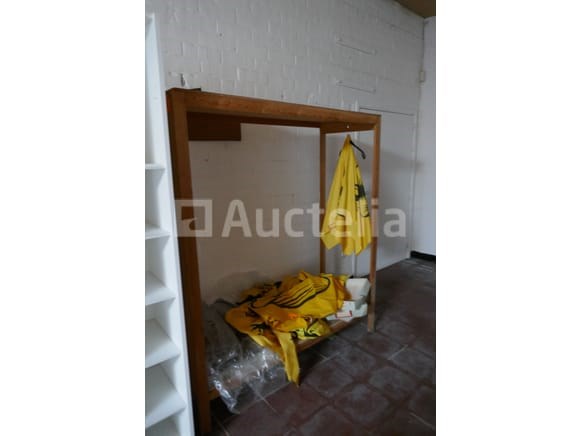 Dubbelzijdig houten rek + houten vakkenkast