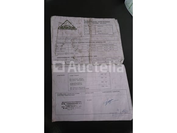 Pompwagen Merk: Mercedes-Benz Model: 1325F Jaar: 2000 Kilometerstand: 88035 Lengte: 735 cm Breedte: 270 cm Hoogte: 310 cm Vermogen: 180 kW Datum van 1e inschrijving: 19-02-00 Brandstof: Diesel Verplaatsing (cc): 6374 Versnellingsbak: Automatisch MMA: 17.000 kg Tare: 7440 kg Wielbasis: 361 cm Ophanging: Pneumatisch Aantal toetsen: 1 Aantal zetels: 6 Conformiteitscertificaat: Te verifiëren Technisch keuringscertificaat: Ja Technisch keuringscertificaat geldig tot: 04-01-27 Registratiecertificaat Deel 1: Ja Registratiebewijs Deel 2: Ja Vrachtwagengegevens: Ja Identificatierapport: Ja Voertuig nog in gebruik (kilometerstand verandert): Nee Chassisnummer: WDB9760631K513822 Eurostandaard: 2 Intern verkopersnummer (Ref): lot V1 Status: Het voertuig startte met een booster tijdens de inventarisatie Het voertuig draait op het moment van ophalen Geleverd zonder kenteken Aanbevolen bezoek Opmerkingen: Het voertuig is tijdens de inventarisatie niet grondig geïnspecteerd en kan niet-zichtbare gebreken vertonen De koper zou het perceel vóór zijn veiling hebben bezocht om de logistiek en afhandeling te plannen die nodig zijn voor het innen van zijn aankoop