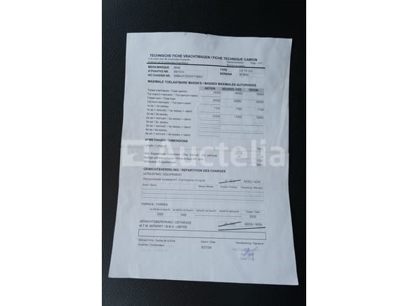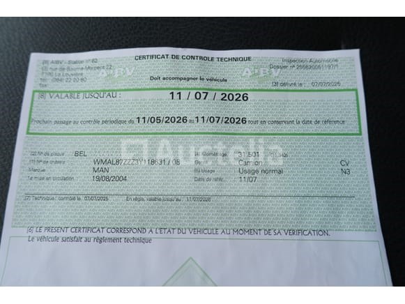 Ladderwagen Merk: MAN Model: LS 19 LLC Jaar: 2004 Kilometerstand: 31937 Lengte: 782 cm Vermogen: 206 kW Datum van eerste inschrijving: 19-08-04 Brandstof: Diesel Verplaatsing (cc): 6871 Versnellingsbak: Automatisch MMA: 19.000 kg Eigengewicht: 16.940 kg Wielbasis: 480 cm Ophanging: Pneumatisch Aantal toetsen: 1 Aantal zetels: 2 Certificaat van conformiteit: Ja Technisch keuringscertificaat: Ja Technisch keuringscertificaat geldig tot: 11-07-26 Registratiecertificaat Deel 1: Ja Registratiebewijs Deel 2: Ja Vrachtwagengegevens: Ja Identificatierapport: Ja Voertuig nog in gebruik (kilometerstand verandert): Nee Chassisnummer: WMAL87ZZZ3Y118631 Eurostandaard: 3 Intern verkopersnummer (Ref): lot V7 Staat: Te renoveren Het voertuig startte tijdens de inventarisatie Het voertuig draait op het moment van ophalen Bekende defecten: Schaalimplementatie wordt nog beoordeeld Geleverd zonder kenteken Aanbevolen bezoek Opmerkingen: Het voertuig is tijdens de inventarisatie niet grondig geïnspecteerd en kan niet-zichtbare gebreken vertonen De koper zou het perceel vóór zijn veiling hebben bezocht om de logistiek en afhandeling te plannen die nodig zijn voor het innen van zijn aankoop