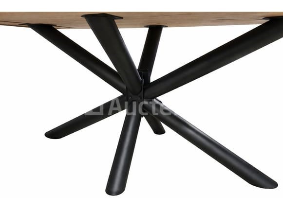 NIEUWE MASSIEF EIKENHOUTEN TAFEL MET ONREGELMATIGE RANDEN 160X100X3,8 CM MET ZWARTE EPOXY IN DE HOUTNERF EN METALEN POOTHOOGTE 77 CM