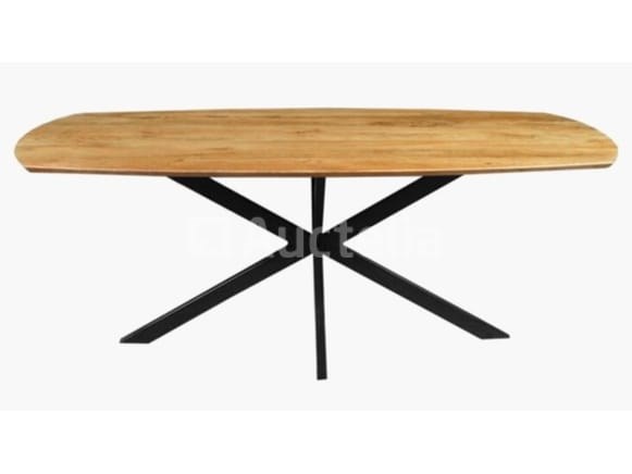 NIEUWE DEENSE RECHTHOEKIGE TAFEL VAN MASSIEF MANGOHOUT AFMETINGEN: 160X90X3CM MET METALEN POOTHOOGTE 77CM
