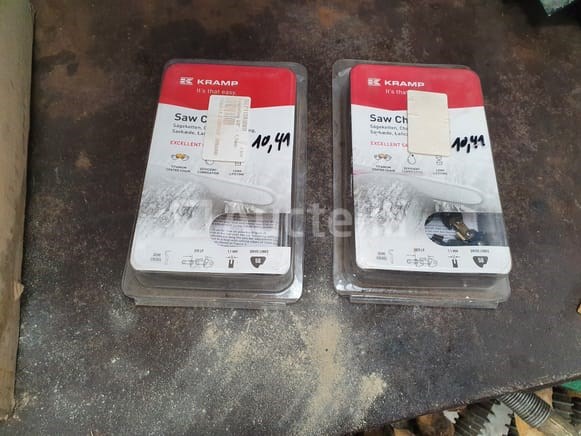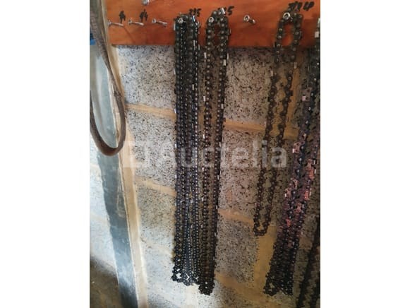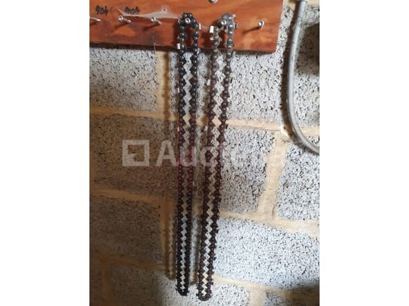 Diverse zaagkettingen: 2 nieuwe, de overige zijn 1x gebruikt en opnieuw geslepen
