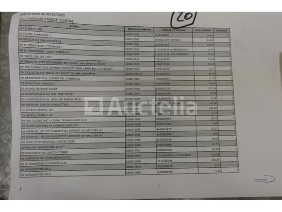 Reserveonderdelen set voor Renault Kangoo Kilometerstand: 29761 Vermogen: 195 kW Datum van eerste inschrijving: 10-10-18 Brandstof: Diesel Verplaatsing (cc³): 7146 Versnellingsbak: Handgeschakeld MMA: 19.000 kg Eigengewicht: 8660 kg Ophanging: Pneumatisch Airconditioning: Handmatig Radio: Ja Aantal toetsen: 1 Aantal zetels: 2 Certificaat van conformiteit: Ja Technisch keuringscertificaat: Ja Technisch keuringscertificaat geldig tot: 23-10-26 Registratiecertificaat Deel 1: Ja Registratiecertificaat Deel 2: Te controleren Vrachtwagengegevensblad: Te controleren Identificatierapport: Ja Voertuig nog in gebruik (kilometerstand verandert): Nee Chassisnummer: WJMA62AN10C398937 Eurostandaard: 5 Conditie: Niet getest Nieuwe onderdelen Voorraadbalans In hun originele verpakking Zie lijst in de bijlage Verspreid over 1 pallet Opmerkingen: Aanbevolen bezoek
