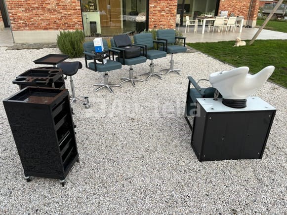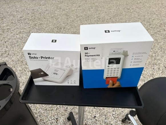 De set bestaat uit: Meubilair +- 4 comfortabele salonstoelen In hoogte verstelbaar Met armleuningen Zeer geschikt voor kapsalon / praktijk / wachtruimte 1 wasunit / shampoobak met stoel Inclusief kraan en afvoer 1 zadelkruk (verstelbaar, op wielen) 1 werktafel / bijzettafel op voet Betaalsystemen SumUp 3G+ Payment Kit (met printer) SumUp Solo + Printer