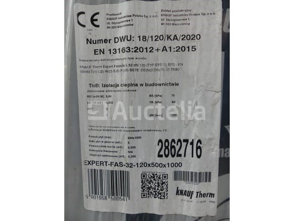Isolatiepanelen voor de gevel van 12 cm dik (25m²) Merk: Knauf Model: Therm Expert Lengte: 100 cm Breedte: 50 cm Hoogte: 12 cm 5 panelen per pak 2,5 m² per pak 25 m² per perceel Opmerkingen: Aanbevolen bezoek