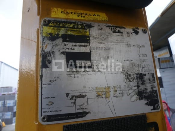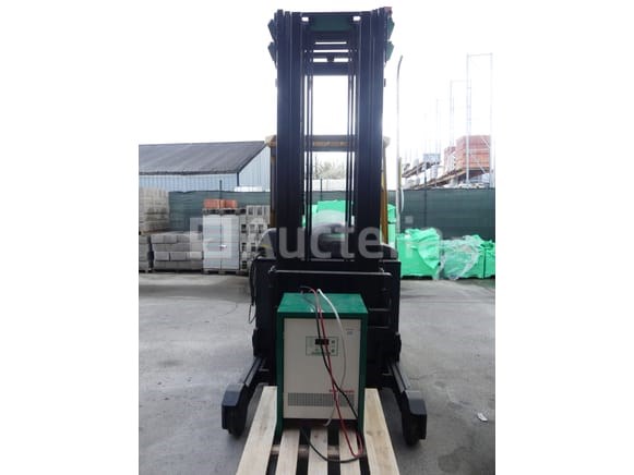 Elektrische reachtruck Merk: Caterpillar Model: NR14 Jaar: 2000 Openingstijden: 5067 Spanning: Op batterij Lengte: 185 cm Breedte: 130 cm Hoogte: 292 cm Voortstuwing: elektrisch Hefcapaciteit: 1400 kg Vorklengte: 115 cm Masttype: Triplex Lifthoogte: 540 cm Aantal wielen: 3 Status: Functioneel op Inventarisatiedag Geleverd met de acculader Opmerkingen: Aanbevolen bezoek