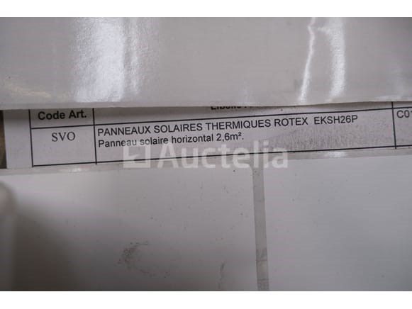 Thermische zonnepanelen (2,6 m²) Merk: Rotex Model: EKSH26P Hoeveelheid: +- 2 In hun originele verpakking Opmerkingen: Aanbevolen bezoek