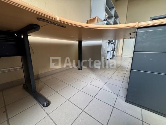 Hoekbureaus Hoeveelheid: +- 2 Deel 1: Afmetingen: 80x80x72,50 cm H Middengedeelte: Afmetingen: 119,50x119,50x72,50 cm H Deel 2: Met lade-eenheid Afmetingen: 41,50x80x72,50 cm H Geen inhoud Opmerkingen: Geen lift, per trapkooi, geen apparatuur op locatie, alles moet door de koper worden geregeld Het perceel bevindt zich op de tweede verdieping