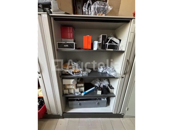 Grijze kasten met 2 gordijndeuren Hoeveelheid: +- 2 Afmetingen: 120x46x170 cm H Geen inhoud Opmerkingen: Geen lift, per trapkooi, geen apparatuur op locatie, alles moet door de koper worden geregeld Het perceel bevindt zich op de eerste verdieping