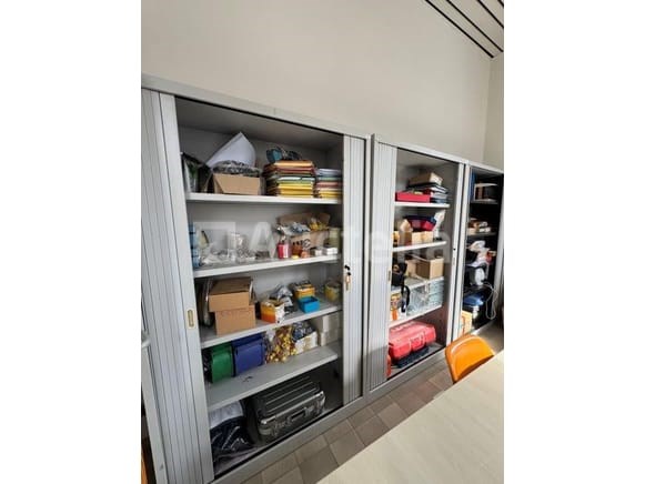 Grijze kasten met 2 gordijndeuren Hoeveelheid: +- 3 Afmetingen: 119x44x200 cm H Geen inhoud Opmerkingen: Geen lift, per trapkooi, geen apparatuur op locatie, alles moet door de koper worden geregeld Het perceel bevindt zich op de eerste verdieping