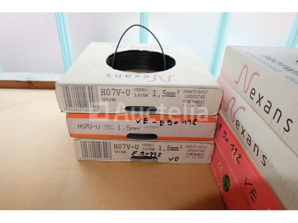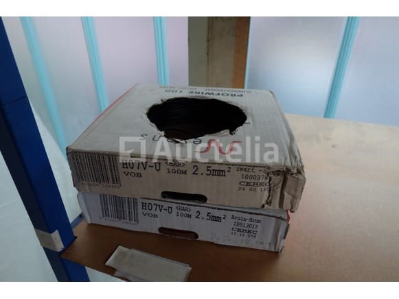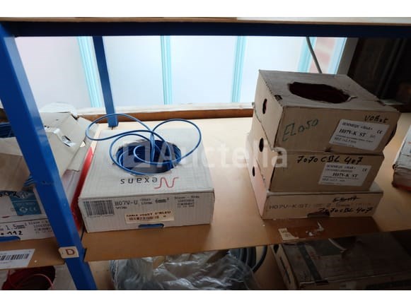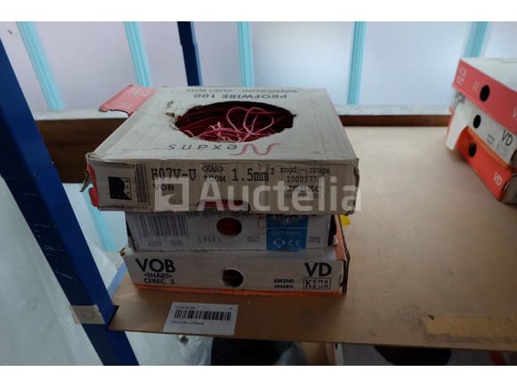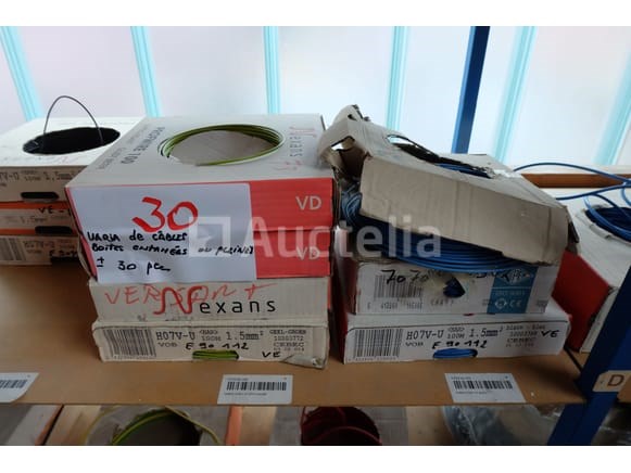 Elektrische kabeldozen Aantal: 30 Niet inbegrepen: Plank Verschillende modellen en referenties Geopende of volledige spoelen Aantal: +/- 30 stuks Terrein bevindt zich op de eerste verdieping via de trap Opmerkingen: Aanbevolen bezoek