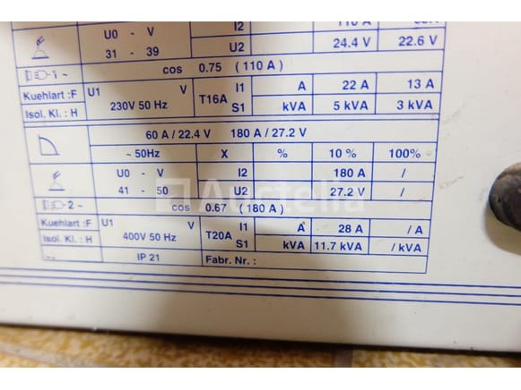 Lasmachine Merk: Contimac Model: Turbo 205 Spanning: 400V driefasig Conditie: Niet getest Geleverd met 1 brander en aardklem Opmerkingen: Aanbevolen bezoek
