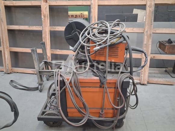Laspost half-automaat Merk: Stimig (Lastekon s.a.) Type: LM300 Proces: MIG/MAG (Half-automaat) Voeding: 220V / 380V (3-fase) Lasstroom: Maximaal 300 Ampère, ideaal voor middelzwaar tot zwaar constructielaswerk. Draadaanvoer: Voorzien van een externe draadaanvoerkast (Lastek MIG-MAG), wat een groter werkbereik geeft ten opzichte van de stroombron. Instellingen: Getrapte regeling van de lasspanning (15 standen) voor een zeer stabiele boog. Mobiliteit: De stroombron is gemonteerd op een stevig stalen onderstel met grote wielen en ruimte voor een gasfles aan de achterzijde.
