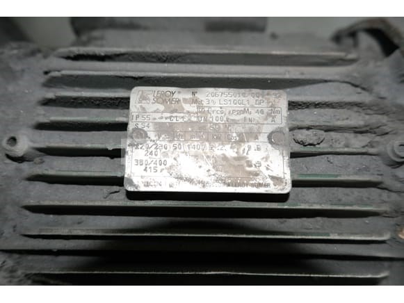 Elektromotor Merk: Leroy Somer Spanning: 400V driefasig Lengte: 100 cm Breedte: 35 cm Hoogte: 35 cm Conditie: Niet getest Ter plaatse te worden afgebroken Aanbevolen bezoek