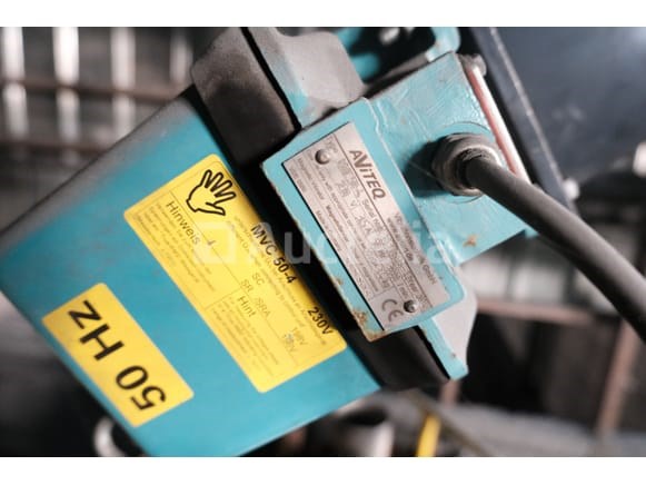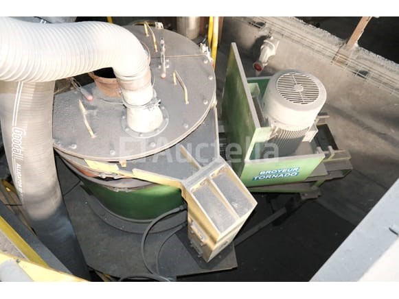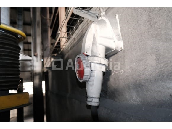 Spanning: 400V driefasig Lengte: 220 cm Breedte: 160 cm Hoogte: 340 cm Conditie: Niet getest Voorzien met: 55 cm transportband Hopper van 75x90x200 cm Hydraulische krachteenheid Ter plaatse te worden afgebroken Aanbevolen bezoek