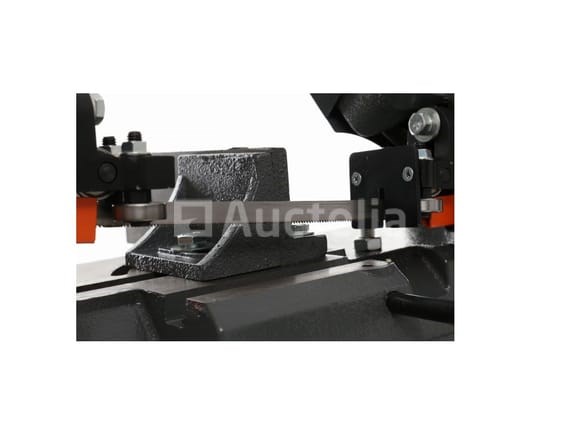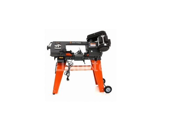 Metalbandzaag Merk: KRAFT&DELE De machine wordt gekenmerkt door haar precisie en sterkte van vakmanschap, waardoor zij aan de voorhoede staat van stripsnijders die zijn ontworpen voor het snijden van profielen, C-doorsneden en massieve materialen. De constructie is gemaakt van massief gietijzer, wat zorgt voor stabiliteit in de werking. Kenmerken: . Verstelbare machinearm vermindert de snelheid door veerspanning . Snelontgrendelingsbankschroef met werkstukstop . Krachtige en efficiënte S1 700W enkelfasige motor Specificaties: . Motorvoeding 230V~/50Hz . 700W apparaatvermogen . Motortoerental 1450 tpm . Bladsnelheid 23 / 34 / 55 m/min . Max. Ronde profieldiameter (90°) 110 mm . Max. Ronde profieldiameter (45°) 75 mm . Maximaal rechthoekige profielafmetingen (90°) 110 × 140 mm . Schuin snijbereik 0° – 45° . Afmetingen 970 × 395 × 945 mm . Netto gewicht 56 kg Conditie: Nieuw Scheepvaart: Tarief D