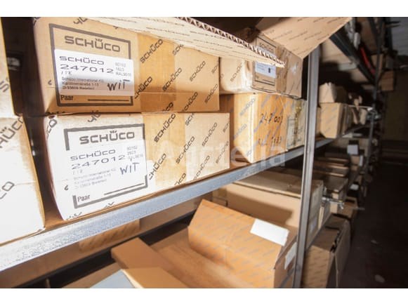 Dit kavel bevat voorraad beslag voor de productie van ramen en deuren, schuifelementen, gevels en brandwerende elementen. Het gaat niet om profielen, maar uitsluitend om beslag — voornamelijk van het merk Schüco. Onderstaande artikels zitten o.a. in dit kavel: 239445 x4 | 239585 x15 | 239587 x4 | 239590 x11 | 239591 x3 | 239596 x10 | 239597 x3 | 239610 x3 | 262016 x4 | 265245 x10 | 265293 x15 | 239584 x4 | 246204 x15 | 246158 x50 | 247034 x4 | 243066 x15 | 247009 x10 | 243033 x10 | 262430 x1 | 288720 x8 | 268640 x4 | 368608 x3 | 211708 x1 | 241543 x3 | 267558 x3 | 242285 x4 | 237850 x2 | 241700 x2 | 266616 x8 | 266619 x10 | 278872 x2 | 245701 x1 | 268006 x1 | 278790 x1 | 278664 x1