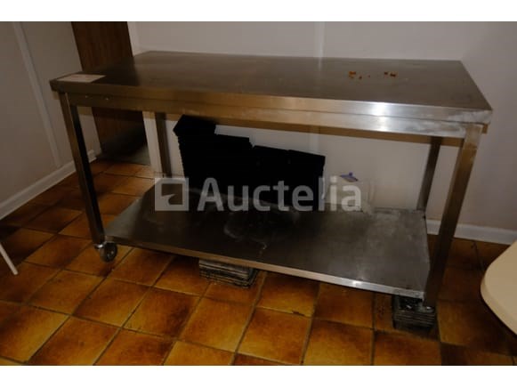 Roestvrijstalen tafels Lengte: 150 cm Breedte: 70 cm Hoogte: 90 cm Intern verkopersnummer (Ref): kavel 100 Staat: Te renoveren Niet inbegrepen: inhoud 2 vermiste casters Aanbevolen bezoek