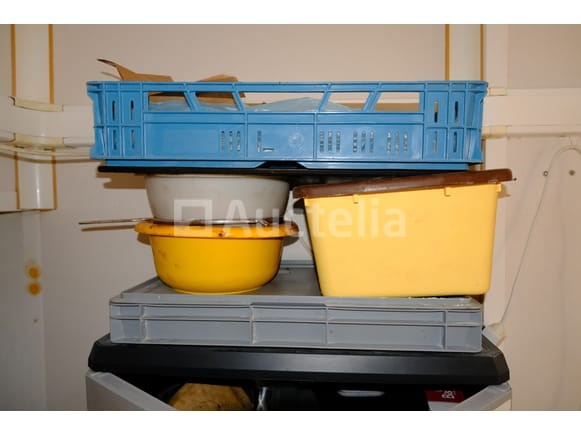 Bakkerijkeukengerei en wandconsoles Intern verkopersnummer (Ref): kavel 103 Niet inbegrepen: Tabellen Diverse gebruiksvoorwerpen Tartletmallen Bloemschalen Plastic planken Muurbeugels enzovoort.