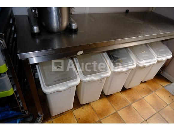 Roestvrijstalen tafels Lengte: 200 cm Breedte: 70 cm Hoogte: 87 cm Intern verkopersnummer (Ref): kavel 116 Niet inbegrepen: Inhoud Op wielen