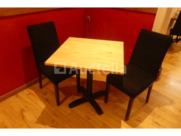 Bistrotafel + stoelen Lengte: 74 cm Breedte: 74 cm Hoogte: 76 cm Hoeveelheid: +/-6 Niet inbegrepen: Inhoud Geleverd met 12 achterstoelen Stoffen zitting, houten frame Opmerkingen: Aanbevolen bezoek