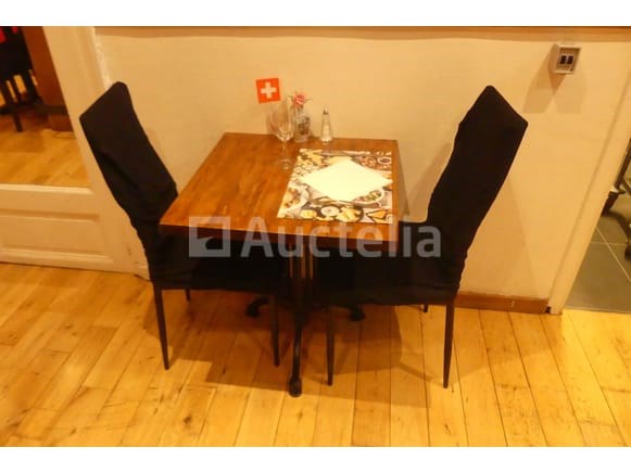 Bistrotafel + stoelen Hoeveelheid: +/-6 Niet inbegrepen: Inhoud Compositie: +/-4 x 70x70x75 cm tafels 2 x tafels van 60x62x72 cm Geleverd met 12 achterstoelen Stoffen zitting, houten frame Opmerkingen: Aanbevolen bezoek