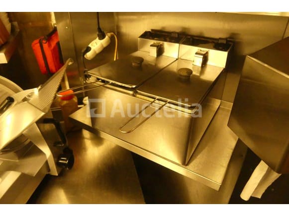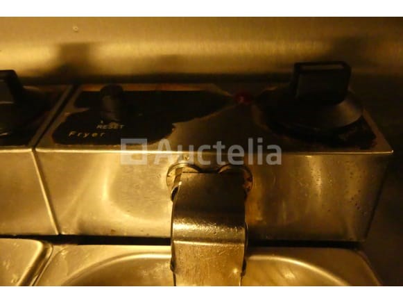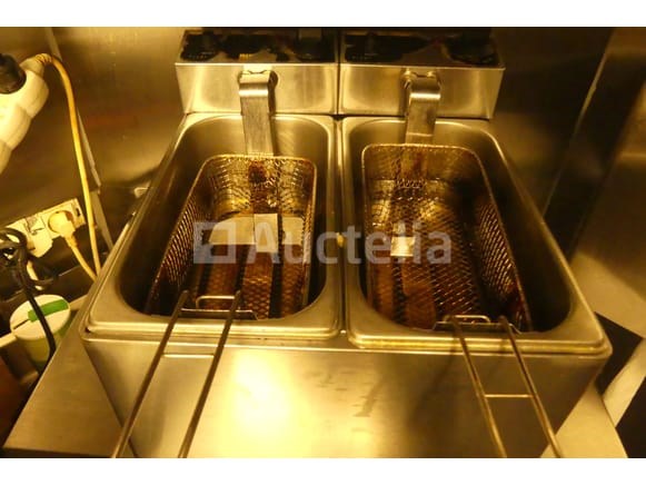 Frituurpan met 2 tanks Merk: Merk en model onleesbaar Spanning: 230V Mono Lengte: 37 cm Breedte: 42 cm Hoogte: 30 cm Status: Functioneel op Inventarisatiedag Opmerkingen: Aanbevolen bezoek