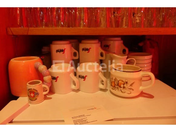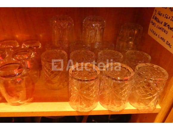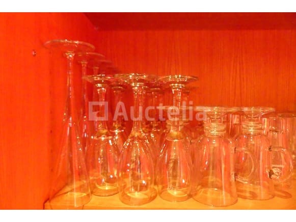 Niet inbegrepen: Planken en sterke dranken Aantal: +/- 200 stuks Compositie: Glasen, borden, bekers, enzovoort... Opmerkingen: Aanbevolen bezoek