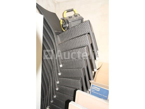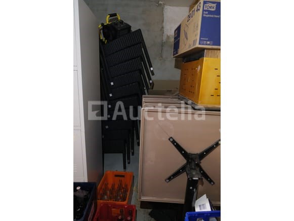Spanning: 230V Mono Vermogen: 126 watt Niet inbegrepen: Inhoud Compositie: +/-6 x vouwbare bistrotafels 70x70x74 cm +/-10 x roten stoelen 1 x elektrische ventilatorkachel Opmerkingen: Het perceel bevindt zich in de kelder via de trap Moeilijke toegang Aanbevolen bezoek