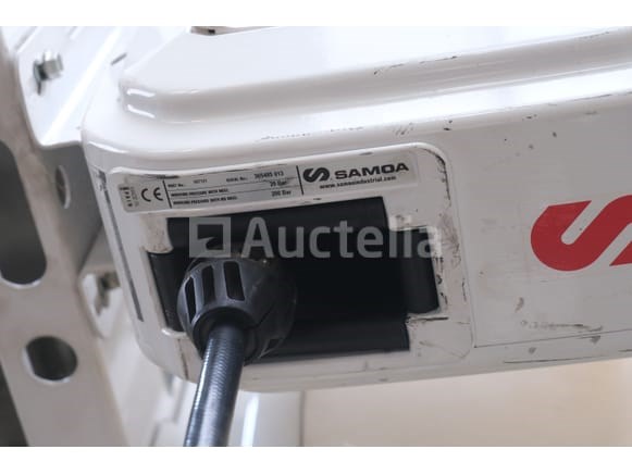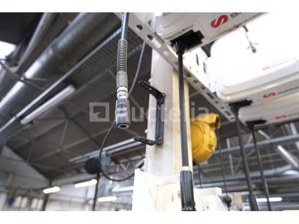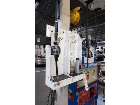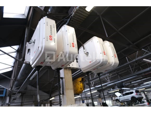 Set van 5 wandgemonteerde slangspoelen Merk: Samoa Spanning: 400V driefasig Capaciteit: 3200 kg Status: Functioneel op Inventarisatiedag Te worden op locatie afgebroken op een hoogte van +/- 300 cm 2x olie met doseerpistool 2 x perslucht 1 x verlengsnoer met handlamp Opmerkingen: Aanbevolen bezoek