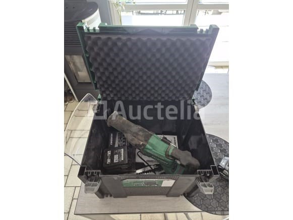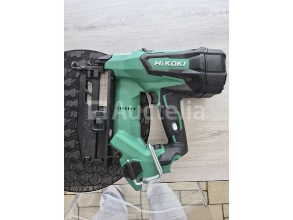 Een batterij-aangedreven spijkermachine, HIKOKI, type NT-1865-DBSL, in de kofferbak + batterij-aangedreven handzaag, merk HIKOKI, type CR-18-DBL, in de kofferbak + 2 batterijen, type BSL 36A 18 Li_Lion + 1 acculader