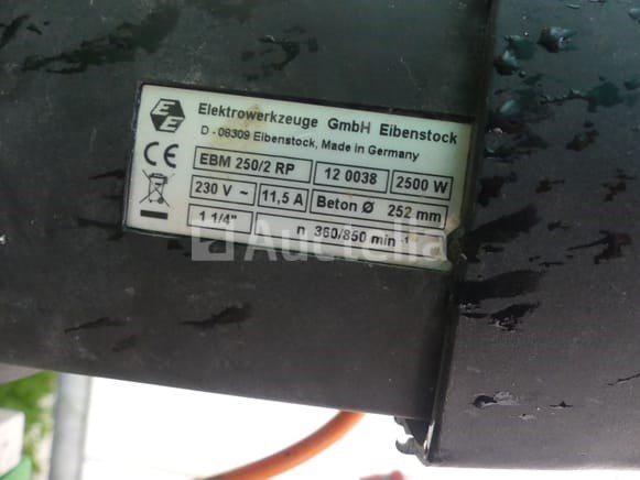 Kernboormachine met steunvoet Merk: Eibenstock Model: EBM250/2 RP Spanning: 230V Mono Vermogen: 2500 watt Status: Getest Voorzien van een 10 liter drukwatertank