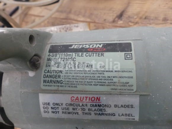 Draagbare natte zaag voor tegels Merk: Jepson Model: 8210SC Status: Getest Spanning: 230 volt enkelfasig Vermogen: 1250 watt Uitgerust met diamantblad