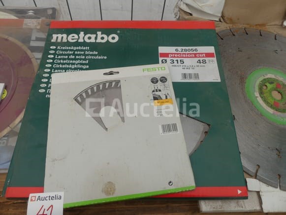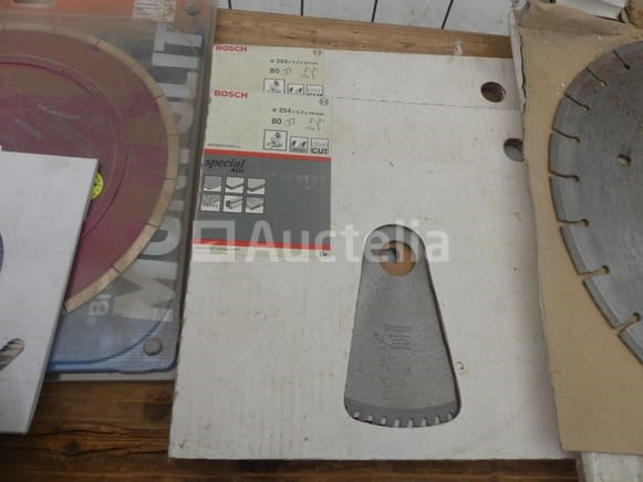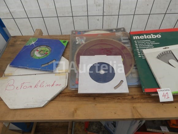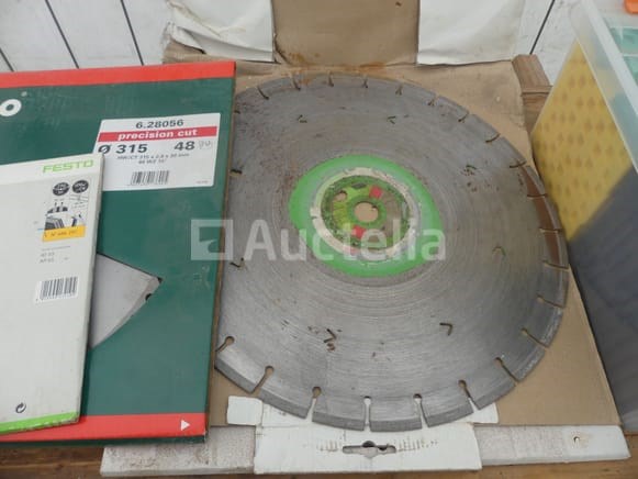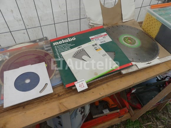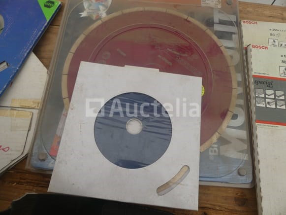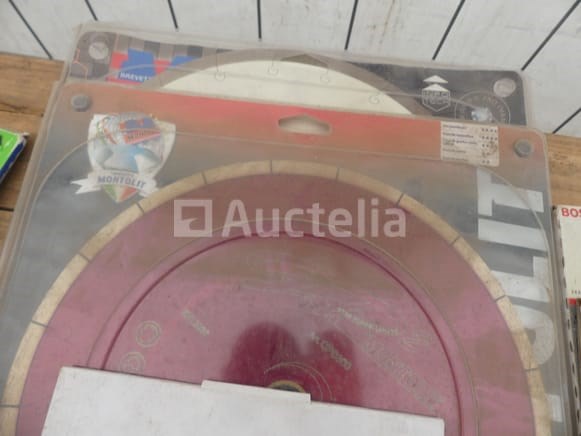 Schijf en bladen voor verschillende machines Aantal: 10 Verschillende modellen en merken Compositie: 3 x diamantmessen (400mm, 300mm, 230mm) 2 x aluminium schijven (254 mm) 2 x Houten Bladschijven (315mm, 190mm) 3 x Tile Disc (300mm, 200mm)