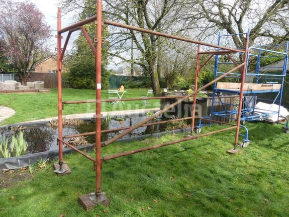 Compositie: 12 x 110 cm x 200 cm ladders 16 x 300 cm Stringers 4 x 100 cm verlengingen 8 verstelbare voeten