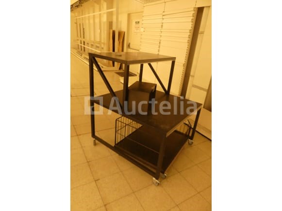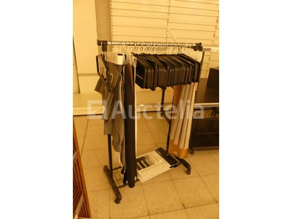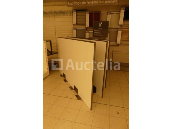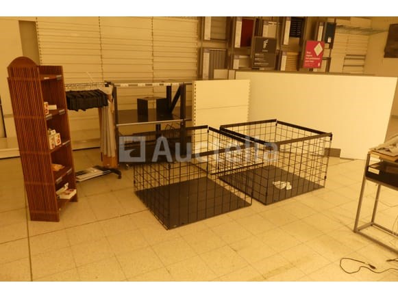 Niet inbegrepen: Jaloezieën en planken Compositie: 1 wiel display van 100x110x125 cm 1 mand van 92x102x70 cm 3 scheidingspanelen van 250x30x136 cm + Staaf en Hangers Opmerkingen: Aanbevolen bezoek