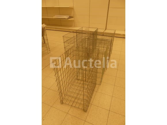 Tentoonstelling van draadmanden Lengte: 55 cm Breedte: 55 cm Hoogte: 78 cm Hoeveelheid: +/- 6 Opmerkingen: Aanbevolen bezoek