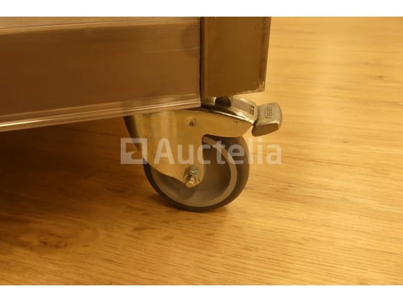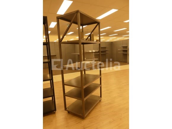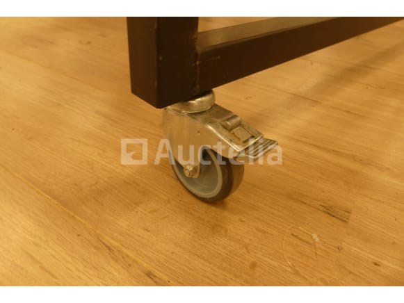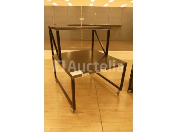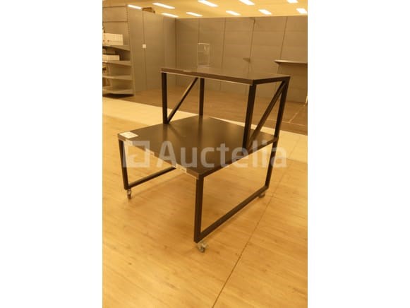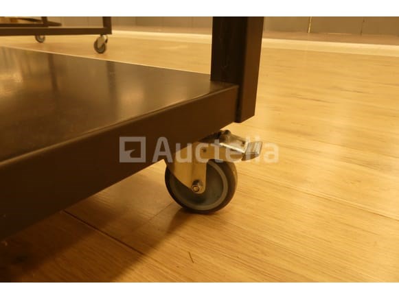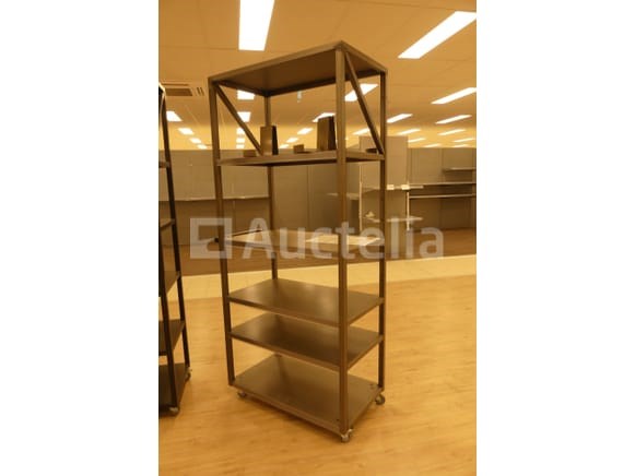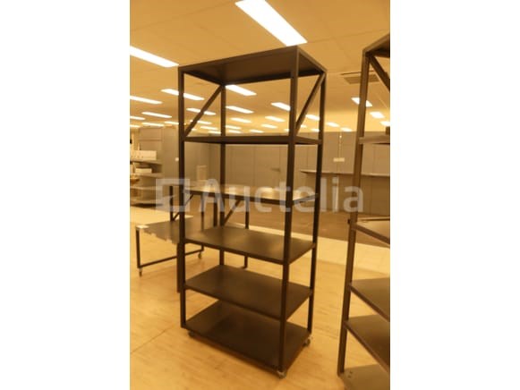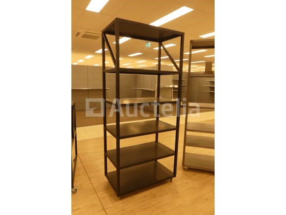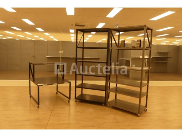 Planken op wielen Lengte: 100 cm Breedte: 57 cm Hoogte: 230 cm Hoeveelheid: +/- 2 Geleverd met een metalen display van 107x100x120 cm Opmerkingen: Aanbevolen bezoek