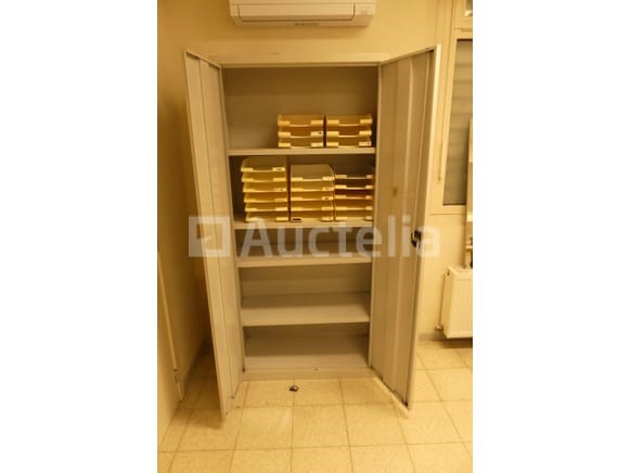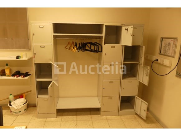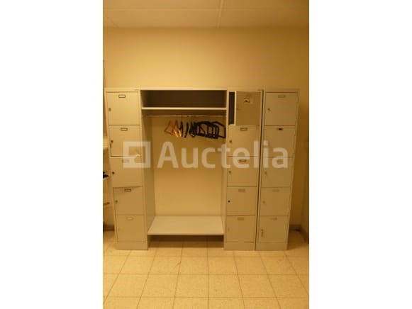 Metalen kasten Hoeveelheid: +/- 3 Inbegrepen: Inhoud 2 x 2-deurs kasten van 92x40x195 cm 1 x Kasten 15 compartimenten van 202x50x185 cm Opmerkingen: Aanbevolen bezoek