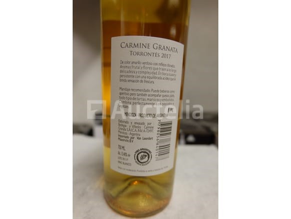 Flessen witte wijn 75 cl - Argentinië Merk: Carmine Granata Model: Torrontes 2017 Aantal: +- 120 Per kist van 12 flessen Opmerkingen: Aanbevolen bezoek