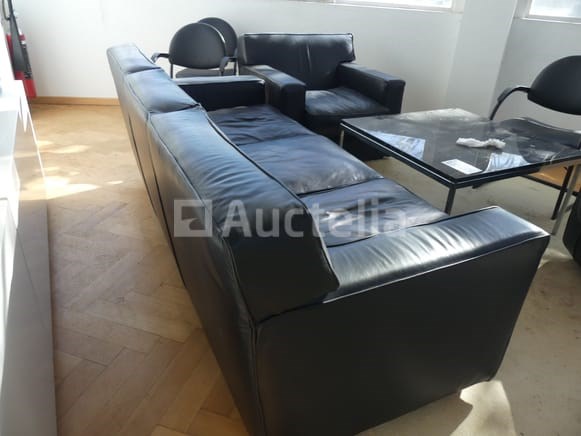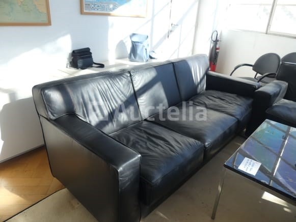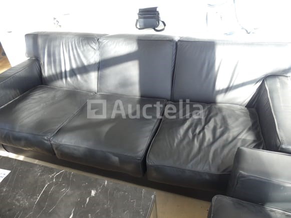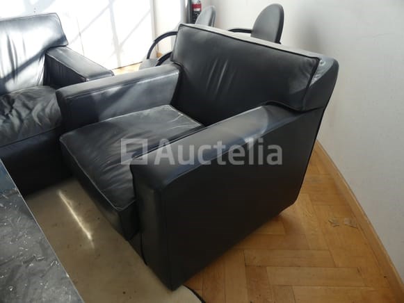 Donker leer/nepleer Afmetingen: 3-zits bank: 215x95x85 cm Eenzitter fauteuils: 90x95x85 cm
