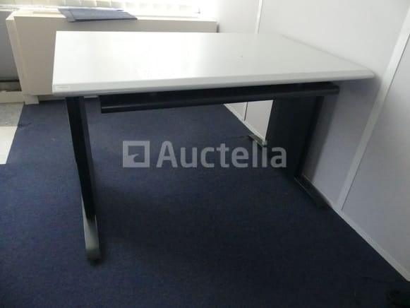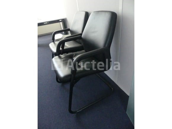 Bureau & Accessoires Compositie: 1 x 120x80x72 cm recht bureau +- 2 x Bureaustoelen +- 2 x zwarte nepleren fauteuils 1 x houten plank 80x29x116 cm