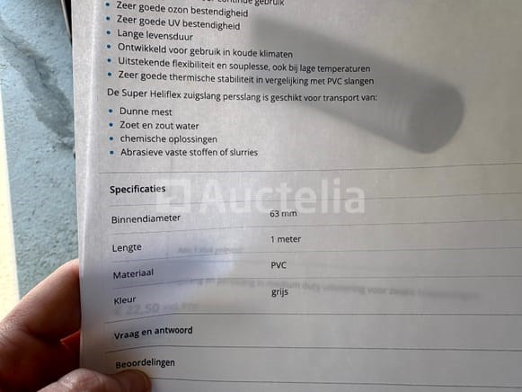 Zuigslangen HELIFLEX 1x Diameter 38mm en 4x Diameter 63mm lengte: 50 m