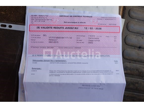 Utility bus Merk: Renault Model: Kangoo 1.5 DCI 80 Jaar: 2015 Kilometerstand: 120088 Vermogen: 66 kW Datum van eerste inschrijving: 01-09-15 Brandstof: Diesel Verplaatsing (cc³): 1461 Versnellingsbak: Handgeschakeld Airconditioning: Handmatig Radio: Ja Certificaat van conformiteit: Ja Technisch keuringscertificaat: Ja Technisch inspectiecertificaat geldig tot: 12-02-26 Registratiecertificaat Deel 1: Ja Registratiecertificaat Deel 2: Te controleren Voertuig nog in gebruik (kilometerstand verandert): Nee Chassisnummer: VF1FW18B551841177 Eurostandaard: 5b Het voertuig startte met booster op de inventarisatiedag Voertuig draait op het moment van ophalen (neem booster mee) Geleverd zonder kenteken Opmerkingen: Het voertuig heeft tijdens het bezoek geen grondige inspectie ondergaan en kan niet-zichtbare gebreken bevatten De koper zou het perceel vóór zijn veiling hebben bezocht om de logistiek en afhandeling te plannen die nodig zijn voor het innen van zijn aankoop