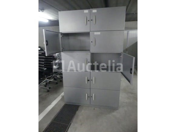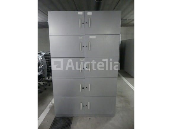 Metalen kast met 10 compartimenten Lengte: 120 cm Breedte: 45 cm Hoogte: 198 cm Hoeveelheid: +- 4 Enkele sleutels ontbreken