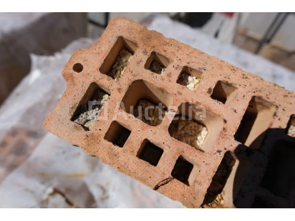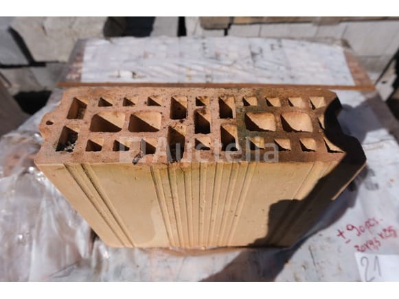 Holle bakstenen Merk: Ploegsteert Model: Lambdabloc Lengte: 30 cm Breedte: 10 cm Hoogte: 25 cm Aantal: +- 180 Op 2 pallets gezet