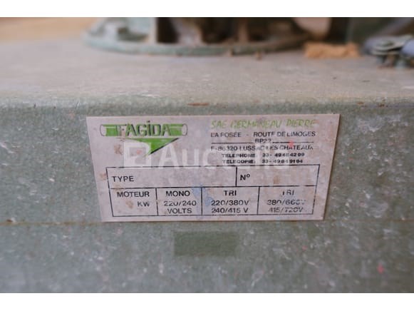 Zuigzak 1 voor houtbewerkingsmachine Merk: Fagida Spanning: 230V driefasig Lengte: 85 cm Breedte: 45 cm Hoogte: 175 cm Conditie: Niet getest Opmerkingen: Aanbevolen bezoek
