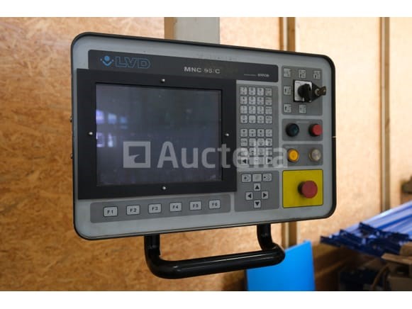 Drukrem Merk: LVD Model: PP 170/30 MNC 95 Jaar: 1993 Spanning: 400V driefasig Lengte: 420 cm Breedte: 170 cm Hoogte: 270 cm Gewicht: 11500 kg Vermogen: 14 kW Capaciteit: 170 T Status: Functioneel op Inventarisatiedag Uitgerust met numerieke besturing Opmerkingen: Aanbevolen bezoek